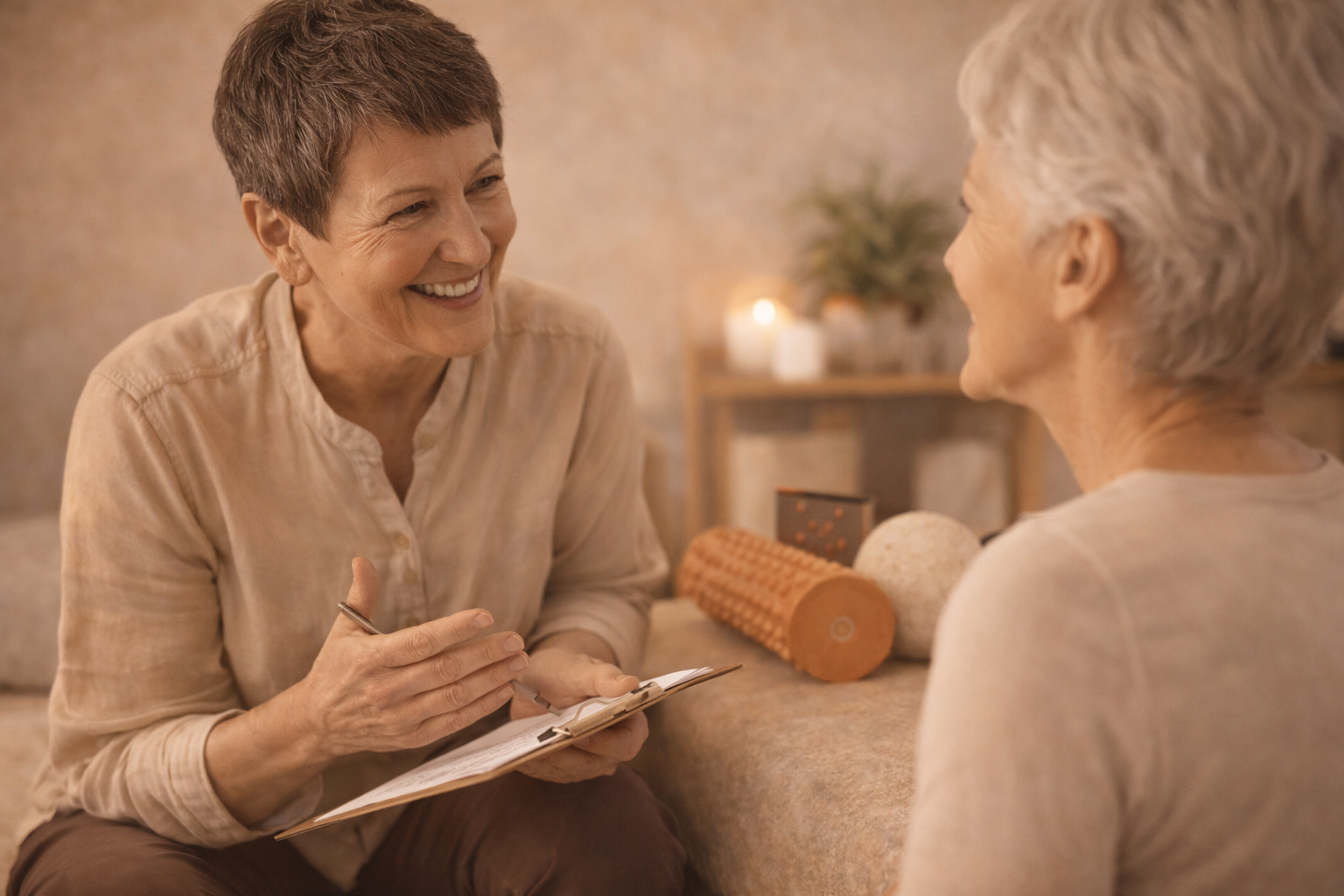 Nach einer ausführliche Anamnese, erstelle ich ein auf Sie individuell abgestimmtes Konzept, bestehend aus Osteopressur, Engpassdehnung und Faszienrollmassage.